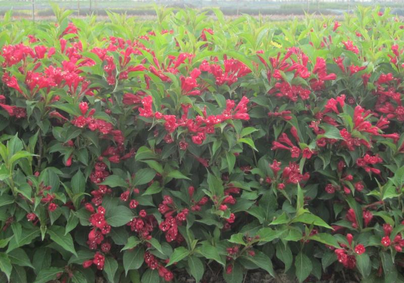 開花期為4月至6月。錦帶花枝葉茂密,顏色鮮麗,開花期可將近一個多月。這是東北地區初春花卉灌木叢的重要運用。適用院落墻腳和河邊群植;它也可以作為樹籬和森林的叢林栽種;點綴在庭院假山和陡坡上。