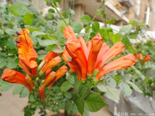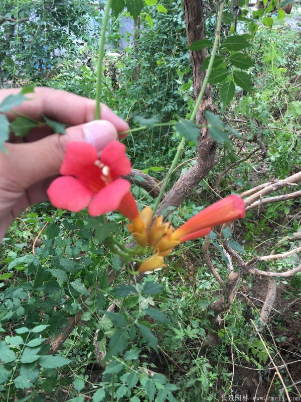 凌霄,棵型總高度0.4~2m高之間,葉片形態按照種類各不一樣有區別,有的較為細長,有的比較圓,凌霄花朵色調是充實,如大紅,紅色,黃色,白色等,開花的時間較長,開花量大,每年花開時間段從6月中旬到8月下旬,花種9~10月才熟,有較高的發芽能力。廣泛分布在亞洲,俄國地區,我們國家的江蘇沭陽,遼寧,秦皇島,山東,河南等都是凌霄的重要產區。