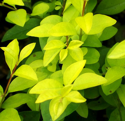 金葉女貞屬半常綠小灌木,株高可達1~2米,金葉女貞的葉片密集且分枝較多,葉片稍小、且較薄;